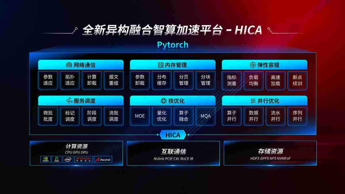 通过自研的服务层、、、、中间适配层、、、、以及调度编排算法,,,采用数据并行、、模型并行等多种并行方式,,,,把并行计算任务进行有效的分解,,,,使其分别由相应的软件栈和算力资源来承接。。。当GPU资源变化,,HICA可以实时动态调度计算子任务并调整模型拓扑和架构,,,,以充分聚合各种算力资源。。。。